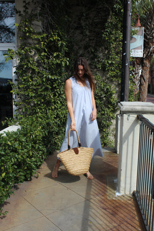 This soft sky blue maxi dress is the definition of easy elegance. Designed with a relaxed, flowy silhouette and subtle gathered neckline, it drapes beautifully for a flattering, comfortable fit you’ll want to live in!